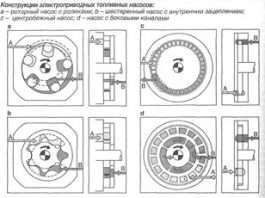 Не так давно стало популярним розміщувати електроприводні насоси безпосередньо всередині паливного бака. Зазвичай вони мають наступні компоненти: - фільтр на вході - паливо відбивну камеру (її функція забезпечувати постійну подачу палива навіть під час повороту)
