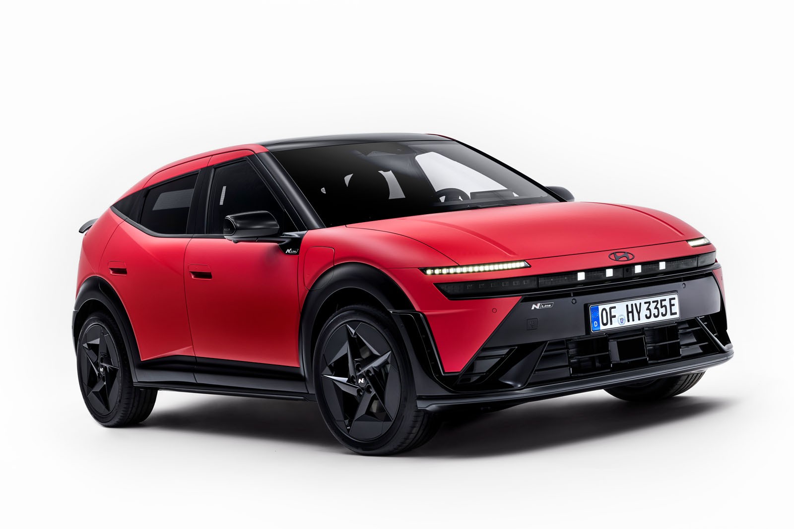 – Похила лінія даху: нагадує класичний Hyundai Veloster, плавно звужуючись до задньої частини.