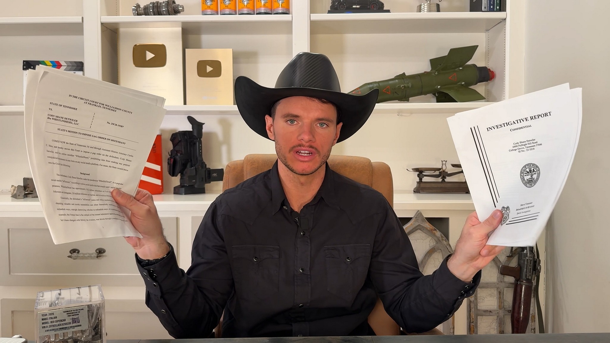 YouTuber Cody “WhistlinDiesel” Detwiler стверджує, що влада штату Теннессі навмисно чекала, щоб заарештувати його за звинуваченнями в ухиленні від сплати податків, а потім намагалася змусити його замовкнути, вимагаючи заборонного припису. У справі фігурує його Ferrari F8, зареєстрований у Монтані, який згодом був знищений у Техасі. Детвілер стверджує, що держава навмисно затримала повідомлення про можливі податкові проблеми, щоб зібрати вагоміші докази, а потім здійснила арешт для максимального публічного ефекту.