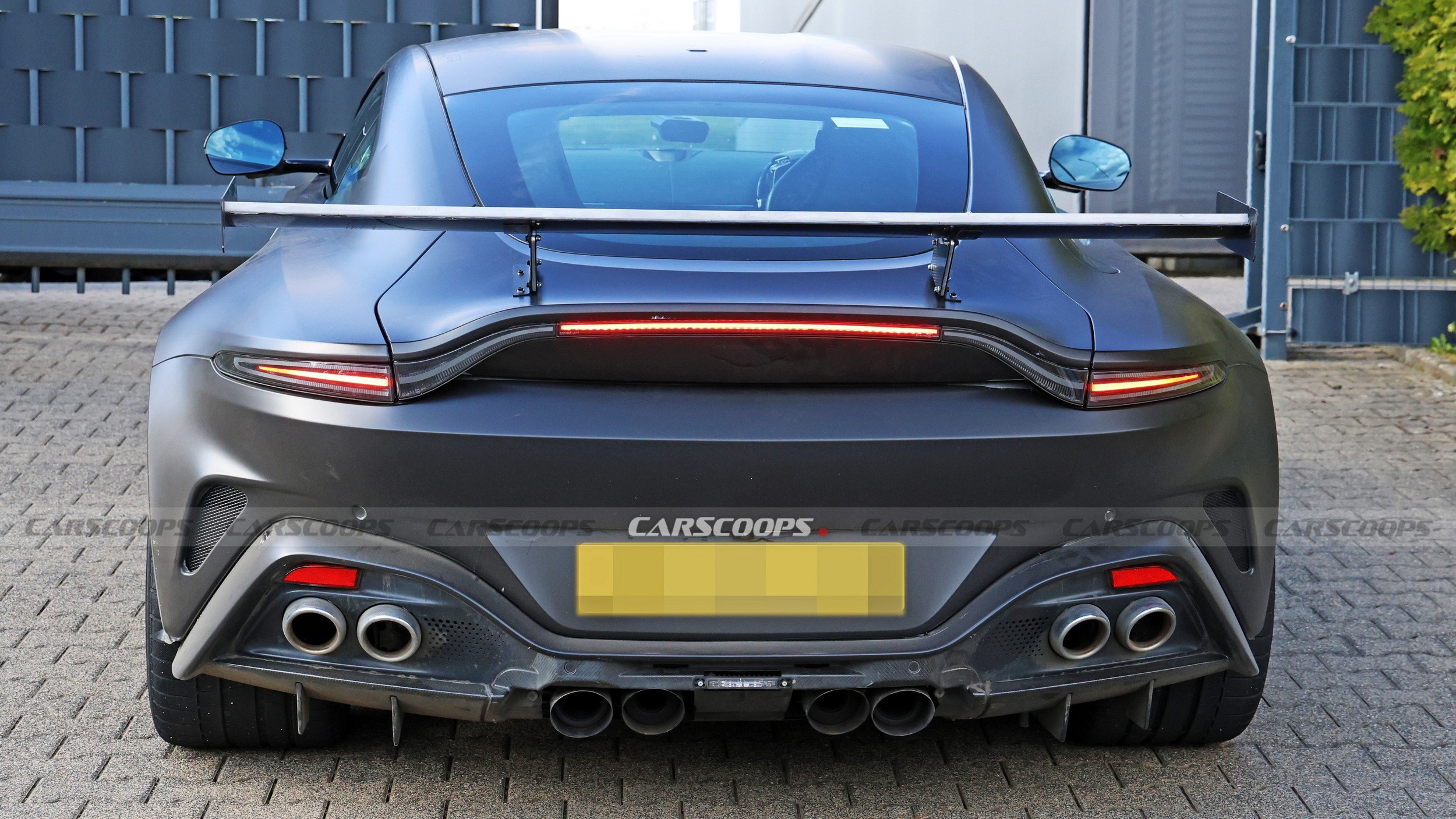- «Хибні» труби: Чотири зовнішні труби, швидше за все, служать заглушками або є естетичним елементом, що перекочував від стандартної моделі Vantage, щоб зберегти звичний силует на ранніх етапах тестування.